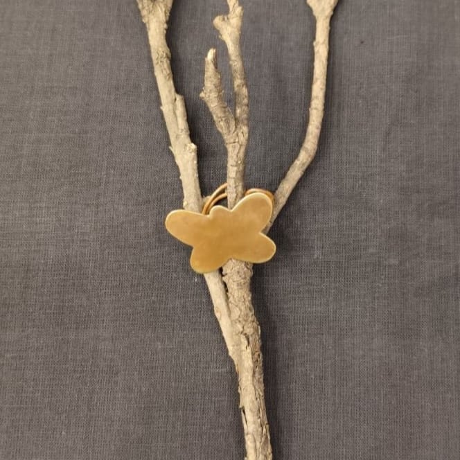 Handcrafted in copper and brass, this adjustable ring features a minimal butterfly motif. Its warm golden tone and simple form make it an easy accent for both ethnic and contemporary styling.