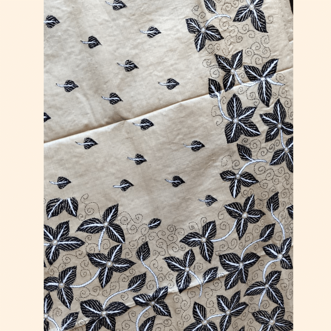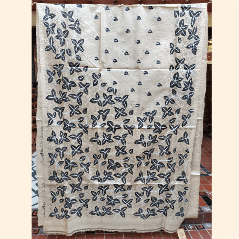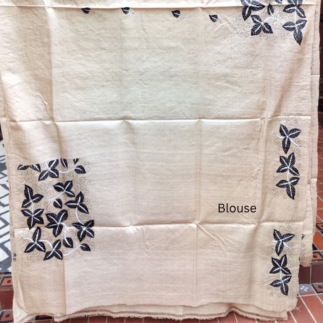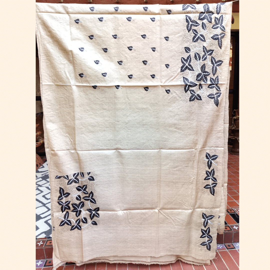 Be the first to review “Tussar Silk Kantha Saree – Beige with Black and White Leaf”