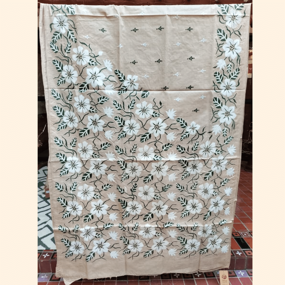• Design: Large floral vine motifs in hand-stitched Kantha embroidery