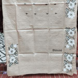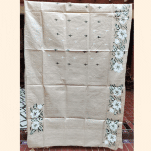 Be the first to review “Tussar Silk Kantha Saree – Beige with White and Black Floral”