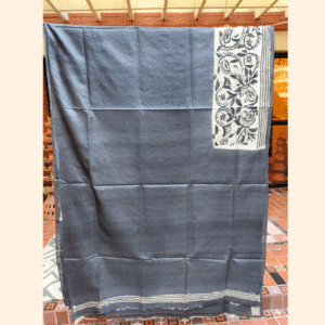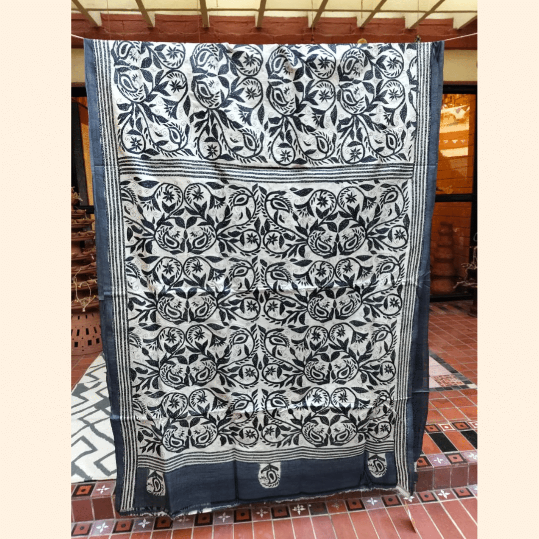 Tussar Kantha Saree – Black and White