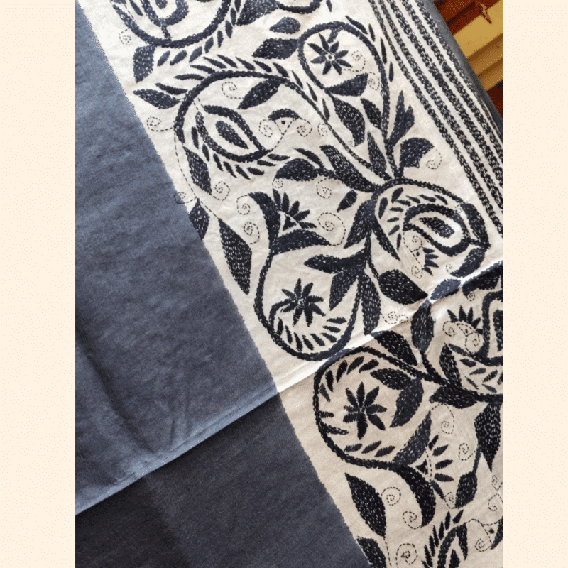 • Design: Floral embroidery with traditional geometric borders in hand-stitched Kantha