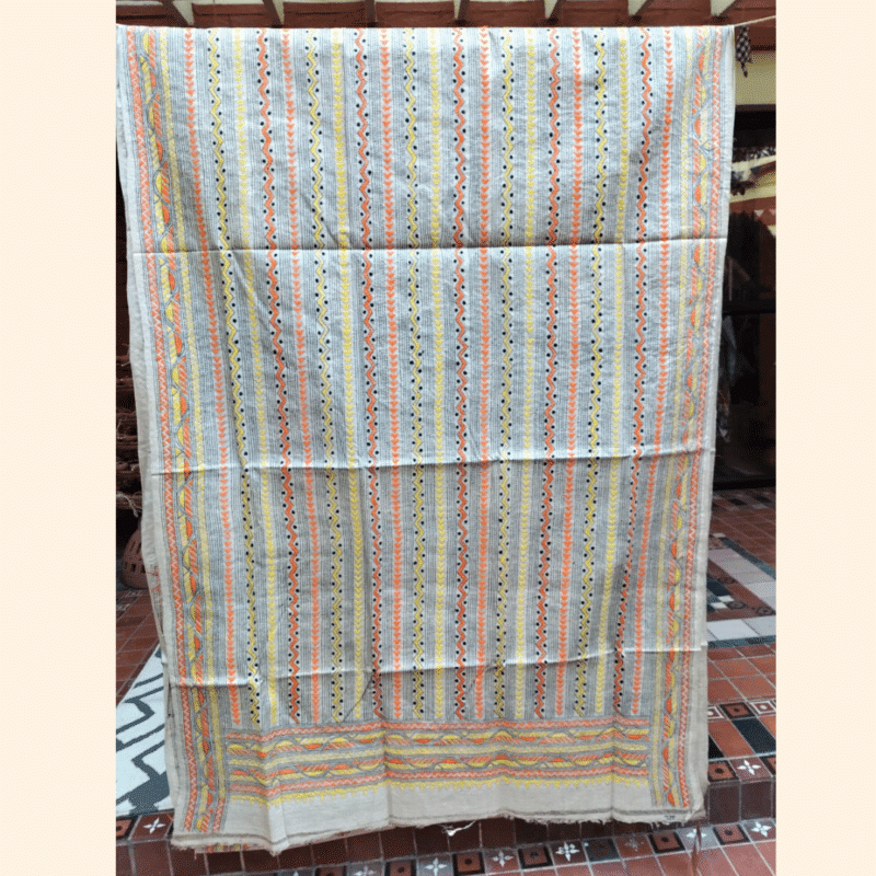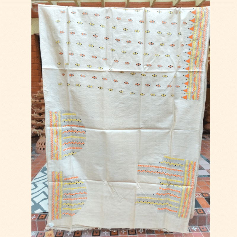 Be the first to review “Tussar Silk Kantha Saree – Beige with Yellow, Orange and Black”