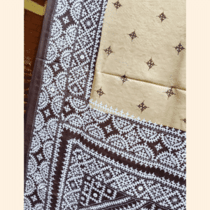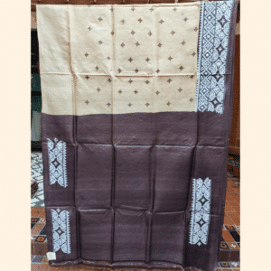 Be the first to review “Tussar Silk Saree with Gujarati Stitch – Beige with Dark Brown and White”
