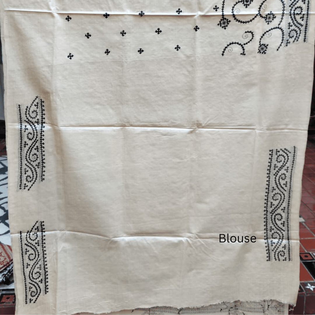 Tussar Silk Saree with Gujarati Stitch – Ivory and Black