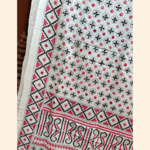 Be the first to review “Tussar Silk Saree – Ivory with Black & Red”