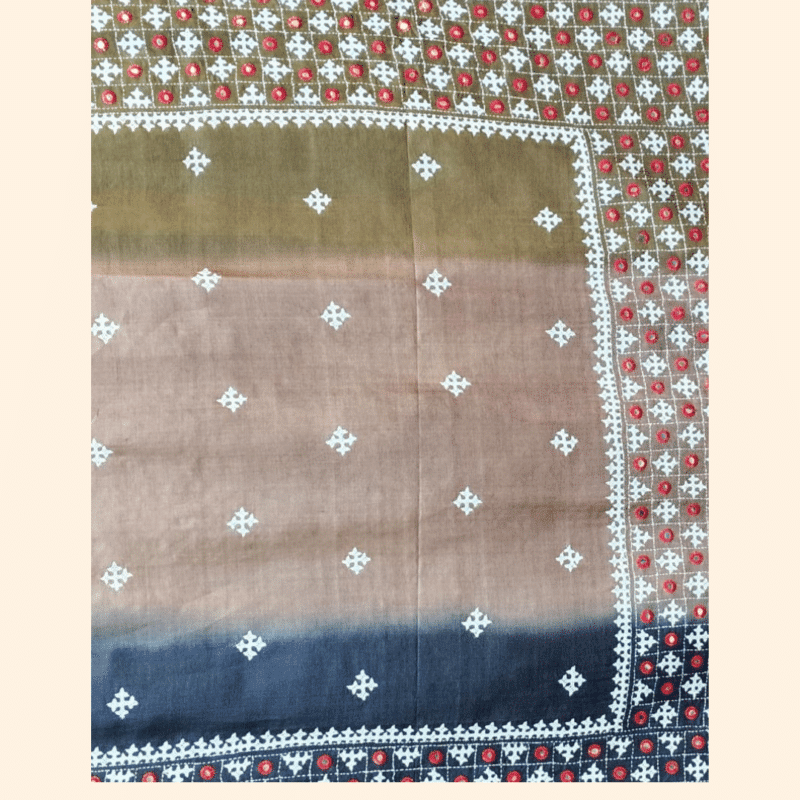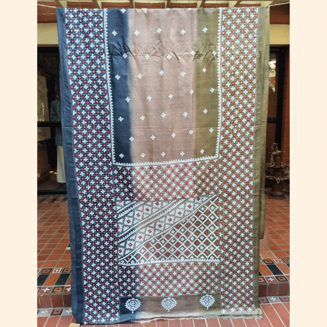 • Design: Tri-color gradient body with Gujarati stitch