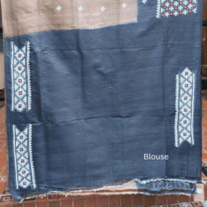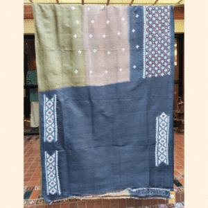 Be the first to review “Tussar Silk Saree with Gujarati Stitch – Blue, Taupe and Green with White and Red”