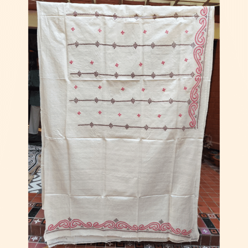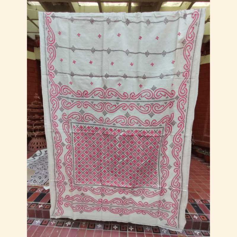 Design: Small repeating motifs in intricate Gujarati stitch